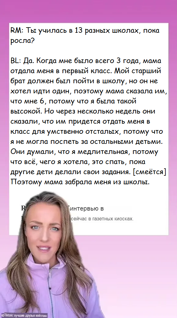 Кейтлин, которая тоже выросла в Калифорнии, поставила под сомнение такую историю Лайвли со школой: