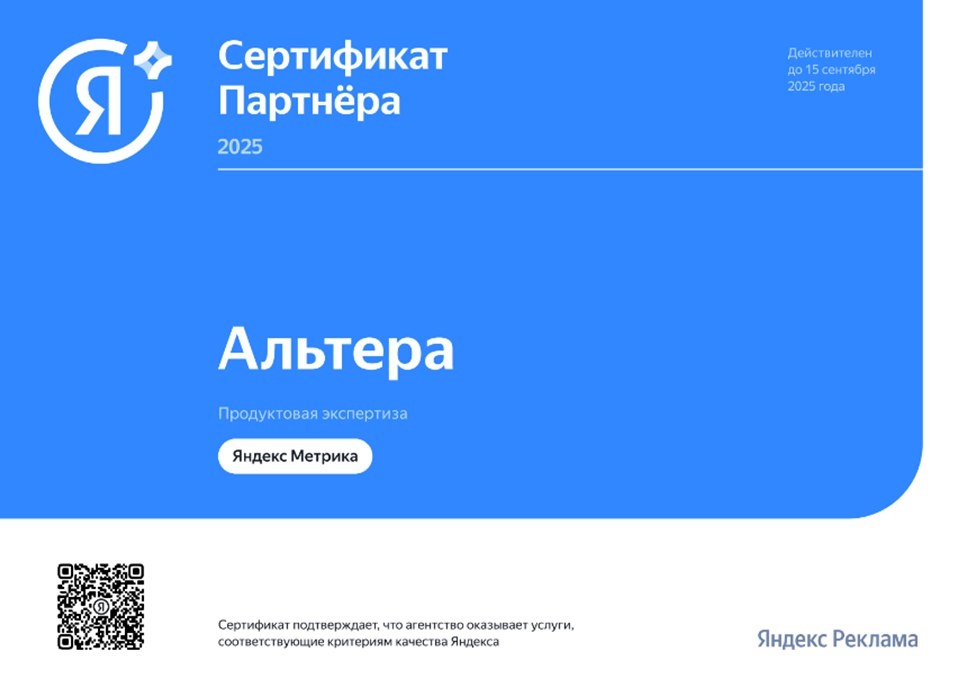 Чтобы получить сертификат, нужно показать, что команда хорошо разбирается в Метрике и ее настройках. Основные требования Яндекса: — В штате агентства должно быть минимум три сертифицированных специалиста по Метрике. Чтобы получить такой сертификат, сотрудники должны пройти тестирование. — Агентство должно подключить минимум 20 активных счетчиков Метрики с количеством визитов более 5 000. — Баллы начисляют, если агентство не просто использует счетчики, а вместе с аналитическими инструментами. Например, для анализа текстовых материалов сайта, взаимодействия пользователей с товарами, передачи коллтрекинга и другие. На каждом проекте мы настраиваем аналитику под задачи клиента, поэтому быстро набрали нужные баллы, во многих категориях — максимальные. Агентство с сертификатом становится бизнес-партнером Яндекса, поэтому ему положены разные плюшки: Поздравляе