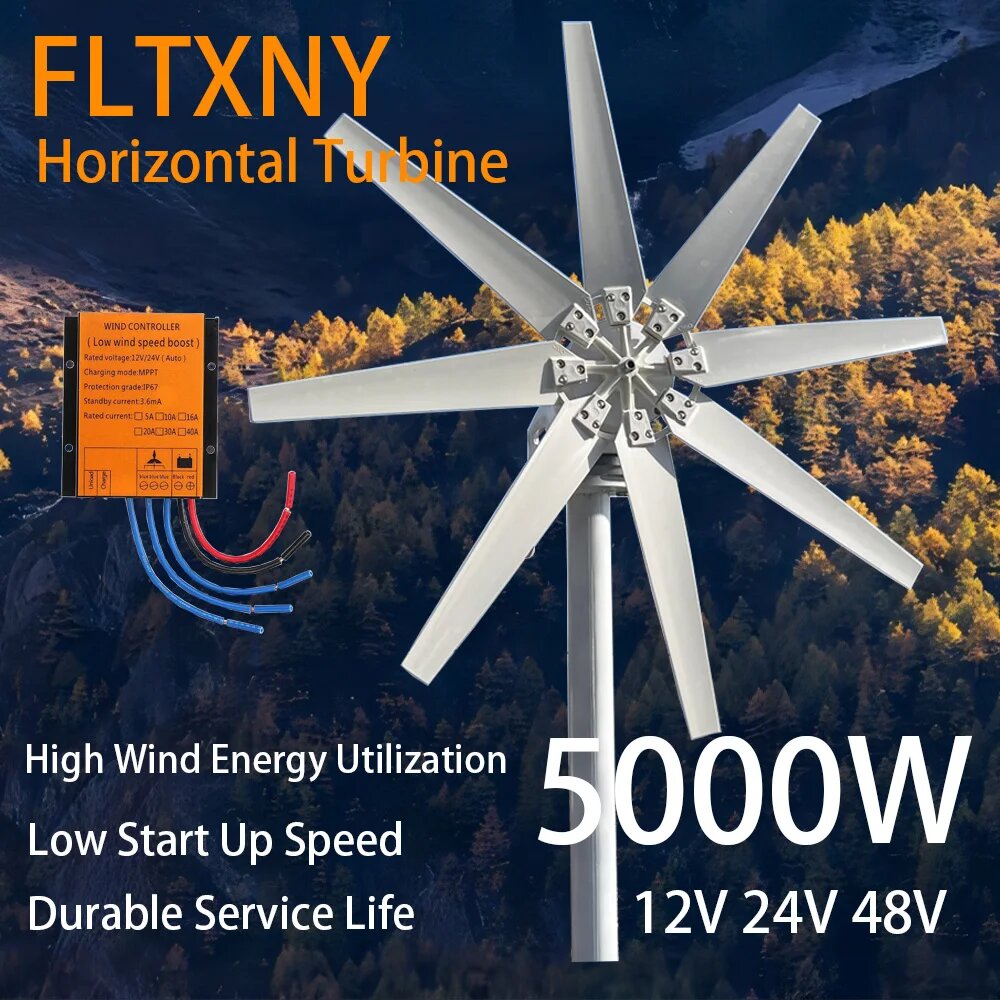 7. ⭐ 10-лопастной ветрогенератор, 10 лезвий, 8000 Вт, 12 В, 24 В, 48 В