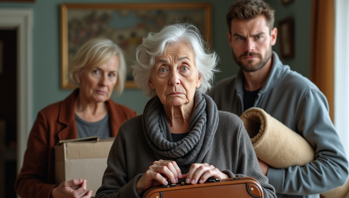 — Немедленно верните всё на место! — потребовала она, прижимая к себе трость. — И уходите. Я с больничной палаты торопилась, думала, дом меня ждёт… А вы превратили его в склад!
