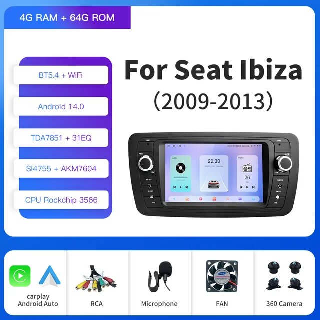 Автомобильный мультимедийный радиоплеер Kapud с 7-дюймовым экраном и камерой 360 — это идеальное решение для владельцев Seat Ibiza 6j, выпущенных в 2009-2012 годах. Этот современный прибор основан на операционной системе Android 13 и предлагает множество возможностей для развлечений и навигации. Сенсорный экран с диагональю 7 дюймов обеспечивает удобный доступ к функциям CarPlay и AUTO SWC, позволяя seamlessly интегрировать ваш смартфон. Высокое качество материалов ABS и сертификат Евротест (СЕ) гарантируют надежность и долговечность в эксплуатации.