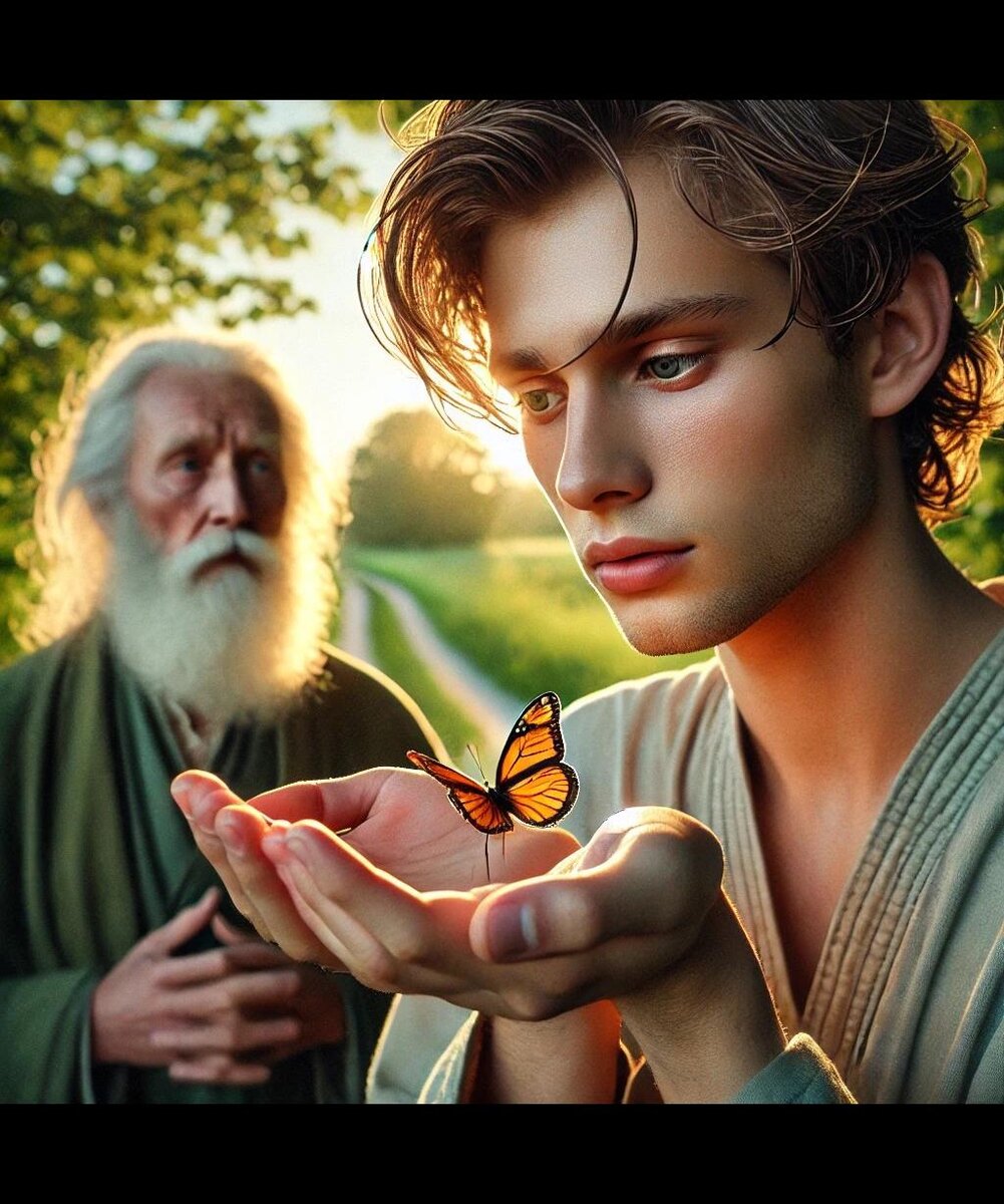 Он поймал бабочку и, держа ее в своих ладонях, подошел к старцу.