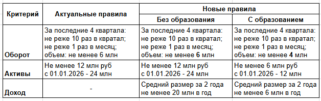 Раз уж зашла речь о фондах для квал инвестора, то решил подробнее почитать про новые правила получения статуса квала. С того момента, как я первый раз получил квала в 2022-м году, изменения коснулись только имущественного ценза: с 1 января 2025-го года подняли до 12 млн, а в 2026-м поднимут еще сильнее (напоминаю, что сюда включаются только активы в виде ценных бумаг, депозитов, металлических счетов, а недвижка не входит). Остальные критерии остались без изменений. Чтобы стать квалом достаточно одного критерия: 🔹 стоимость активов в собственности 🔹 личный опыт работы с ценными бумагами (критерий "оборот"); 🔹 опыт работы с ценными бумагами в компании; 🔹 профильное высшее образование; 🔹 сертификаты CFA, CIIA, FRM. Ничего не поменяли и в необходимости получения статуса у каждого брокера отдельно (это меня до сих пор удивляет). Я получал статус у всех трех брокеров по критерию "Оборот": 🔸 у Тинькофф был большой оборот в 2022-м году (много продавал, много покупал), немного не хватал