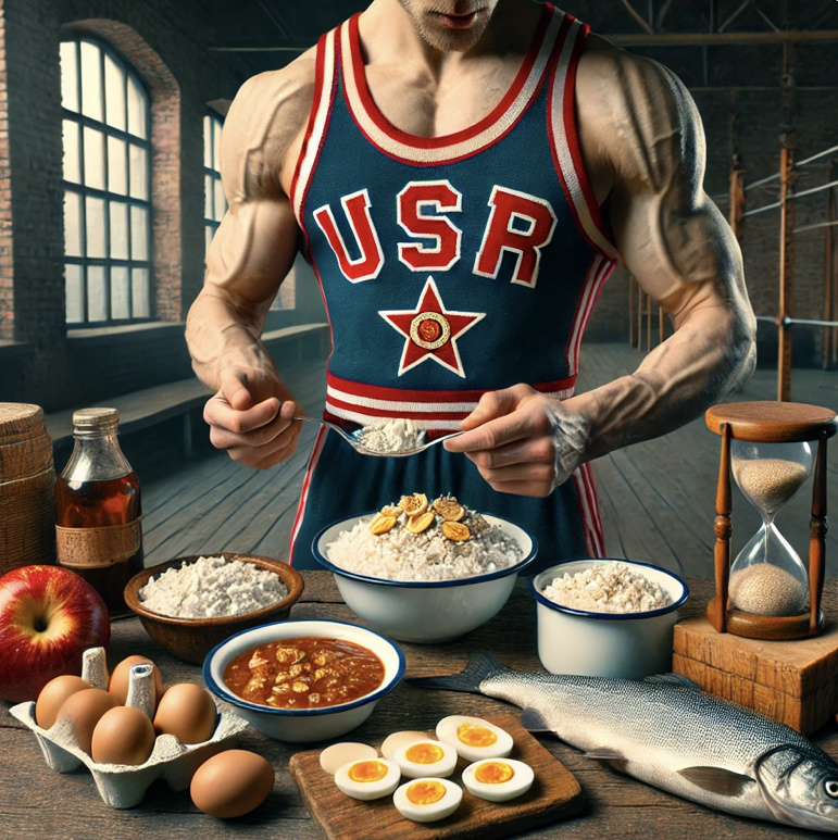 Спортсмены СССР были известны своей выносливостью, силой и дисциплиной. Без современных спортивных добавок и белковых коктейлей они достигали выдающихся результатов, а их питание строилось на простых, но питательных продуктах. Что же ели советские атлеты, чтобы быть в отличной форме? Давайте разберёмся, какие продукты были основой их рациона и почему они полезны. Творог был настоящей находкой для спортсменов. Он богат казеиновым белком, который медленно усваивается и обеспечивает мышцы питанием на долгое время. Советские атлеты ели творог практически каждый день – с мёдом, сметаной или просто так. Почему творог полезен: Советские тренеры советовали начинать день с тарелки горячей овсяной каши. Этот продукт давал медленные углеводы, которые обеспечивали энергией на долгое время. Особенно популярна была овсянка с орехами и мёдом. Чем полезна овсянка: Яйца были неотъемлемой частью рациона советских спортсменов. Их ели варёными, жареными, делали омлеты. В них содержится полноценный бело
