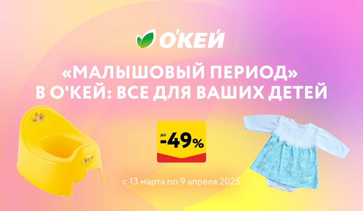 Быть родителем – это одновременно приятно и сложно, согласитесь. Приятно, потому что любишь ребенка, а он любит тебя. Но сложно, потому что хочется дать ребенку все самое лучшее, а это огромный труд. Чтобы вам, дорогие родители, было полегче, магазин О'КЕЙ предлагает детские товары с большими красивыми скидками до 67 процентов. С 13 марта по 9 апреля мы снижаем цены на массу товаров для детей, в основном – для самых маленьких. Прекрасная возможность купить то, что вы планировали. Одежда и текстиль для самых маленьких Все мамы готовы к тому, что одежда для малышей будет постоянно пачкаться. Однако это не мешает делать ее красивой, удобной и комфортной. И, конечно, мамы очень любят выбирать красивые расцветки, компоновать гардероб малыша и для дома, и «на выход». Именно на эту одежду сейчас действуют скидки в 14-39%. Обратите внимание на удобный мягкий детский трикотаж из чистого хлопка: • платья-боди, размеры 56-80 см (399 ₽); • штаны-ползунки с «ножками» и без, размеры 50-80 см (109-1