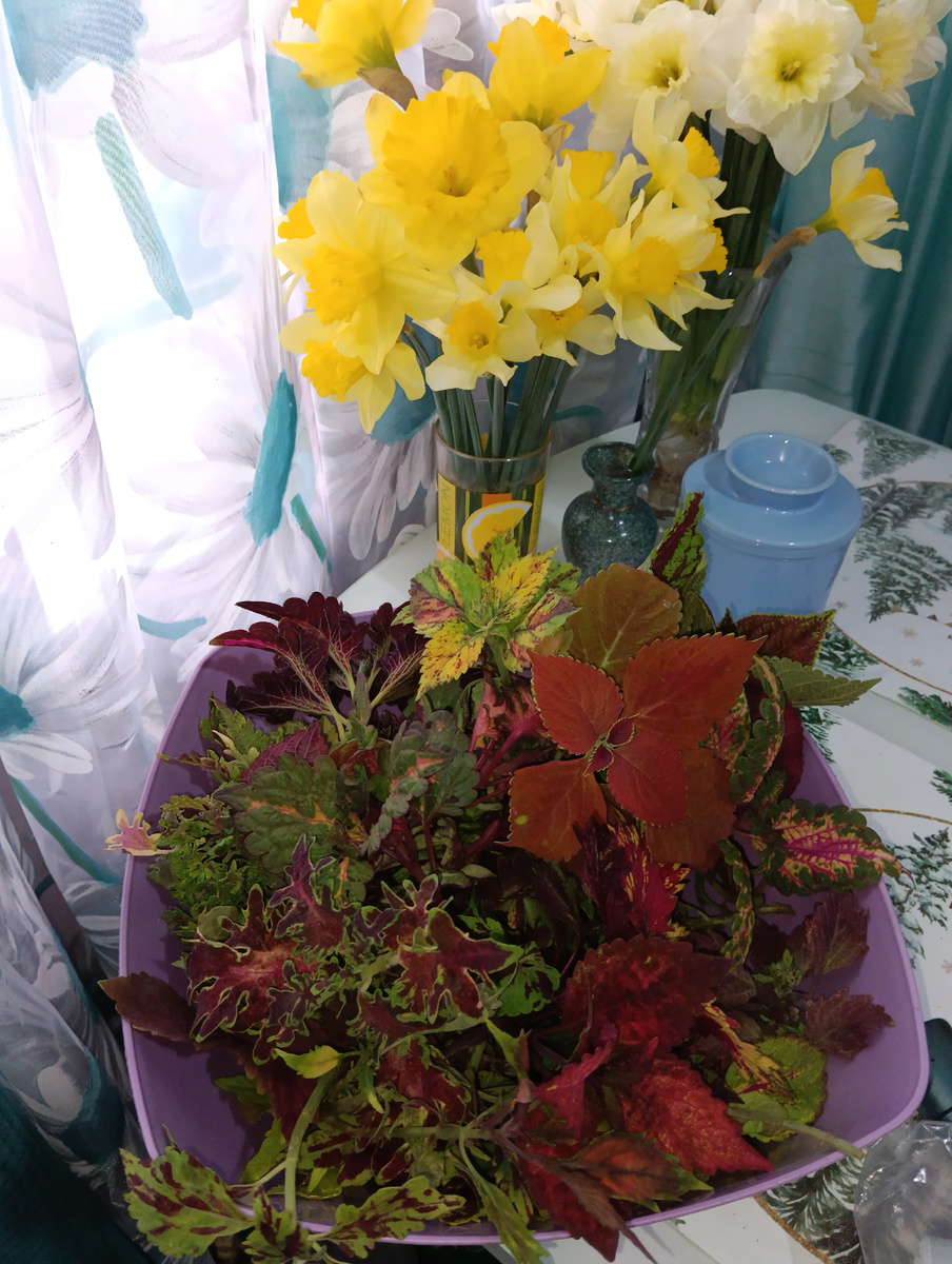 Рука в месте укола разболелась и я сама как-то развалилась. Весь организм ноет, воет и болит. Видимо, реакция на прививку. Вчера ударно собрали три посылки с колеусами, 100 срезов +. Потом под сериал "Мастодонт" распикировали сотню табачных всходов: *** Сегодня встала с намерением ревизировать хотя бы томаты и рассадить баклажаны, но вот уже третий час вяло таскаюсь между теплицей и подоконниками и особо дело не двигается. Поэтому я решила принять горизонтальное положение и запостить всякое рассадное. В обратном хронологическом порядке. Томаты всякие: "Лунный фонтан". Скорее пока "фонтанчик", но чем выше, тем больше цветущие кисти. Это "Атомный виноград Брэда" - отнесла его в теплицу. Очень ровные, красивые саженцы получились. Посажены в биоразлагаемые мешки. В углу всякие разные, пока не доберусь ревизировать. "Бикиньо" жёлтый и красный - красавчики Это "Сумасшедшие вишни Барри" - распикировала по 2 шт. А тут всякие "Призрак Графтон", " Бифштекс Марши", "Флер де реагир".