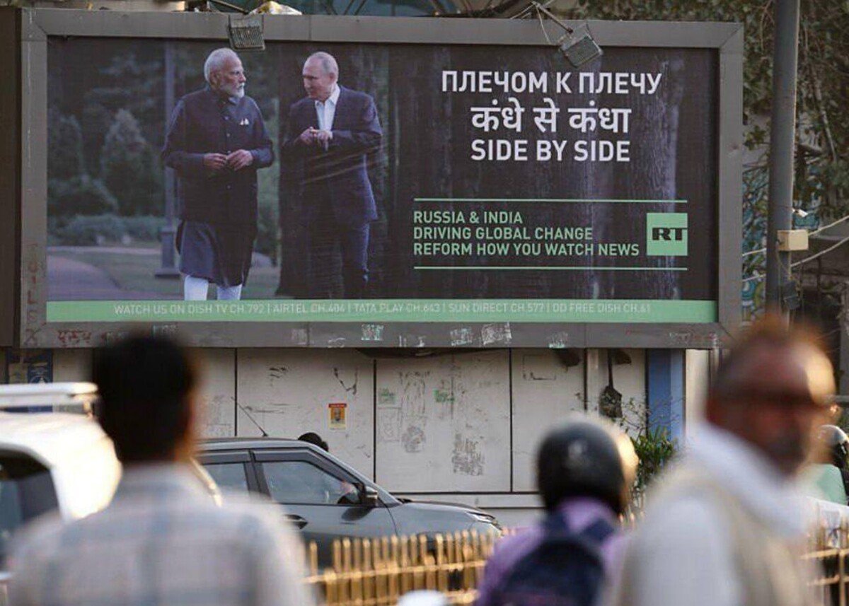 Бывший премьер-министр Швеции Карл Бильдт выразил недовольство рекламными баннерами RT в Индии, продвигающими российско-индийское партнерство. На плакатах изображены президенты Владимир Путин и Нарендра Моди с подписью «Плечом к плечу». «В Дели появились проплаченные Россией билборды, продвигающие сотрудничество России и Индии. Это в противовес стартующему сегодня диалогу Райсина?» – написал Бильдт в социальной сети. Ранее крупные индийские СМИ освещали появление этих баннеров в преддверии международной конференции по геополитике и экономике. Так, NDTV отмечал, что реклама, размещённая в Дели, «продвигает достоверный взгляд на партнерство, которое выдерживает испытание временем», а телеканал News18 сообщил, что баннеры с изображением лидеров двух стран являются стратегическим шагом для укрепления российского влияния в Индии.