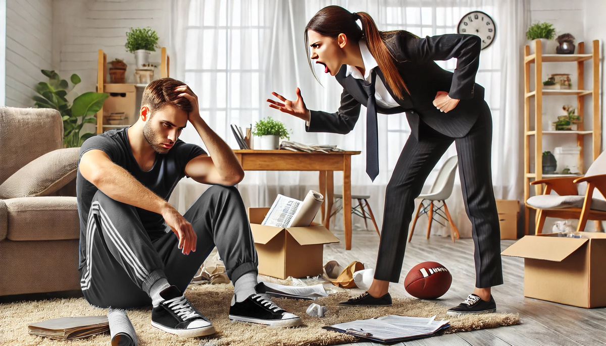 ➥ Насмешки: женщина высмеивает мужчину, подчёркивая своё превосходство.