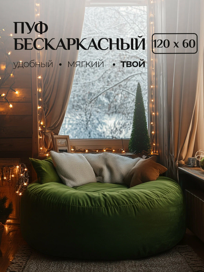 По-настоящему огромный бескаркасный пуф станет отличным местом отдыха и дополнит ваш интерьер. Диаметр – 120 см