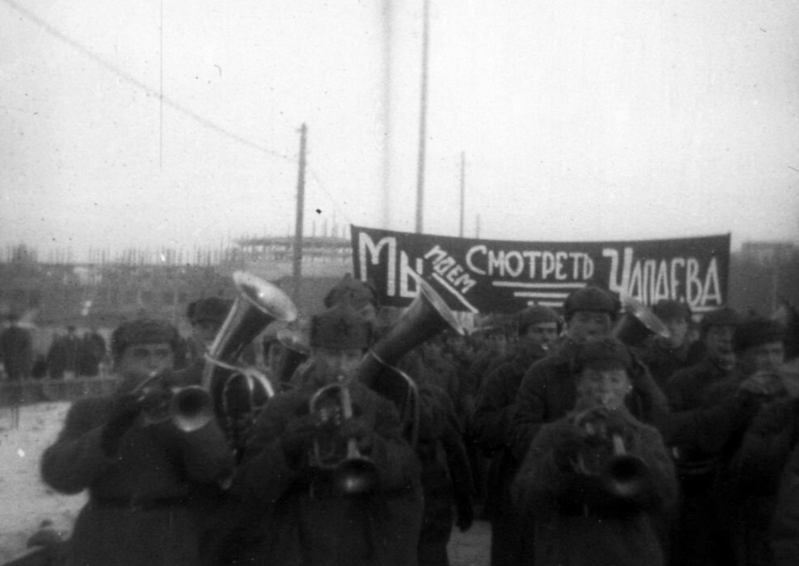 Вспомнилось, как давным давно меня очень впечатлила показанная по телевизору старая хроника, на которой советские граждане чуть ли не как не на демонстрации (хотя почему как, если это выглядело именно как демонстрация) дружно шли смотреть «Чапаева», когда этот фильм только вышел. Там даже транспорант сделали и натянули, чтобы все знали. Понятно, что это такая наглядная агитация, но реально пробирало и хотелось тоже идти вместе с этими пролетариями в ближайший «Ударник». Тем более, что давайте признаемся честно – кино про Василия Иваныча и сейчас, через 90 с лишним лет хорошо смотрится. Говорят, что в Туле тогда самым популярным был кинотеатр имени Бобякина. Так в него билетов на «Чапаева» купить было нельзя, потому что оружейный и патронный заводы выкупили залы полностью для своих рабочих на несколько дней подряд. Я даже не знаю, был ли хоть еще один фильм в истории советского кинопроката, на который бы так выкупали билеты. По моему скромному мнению, ни трилогия о Максиме, ни «Человек