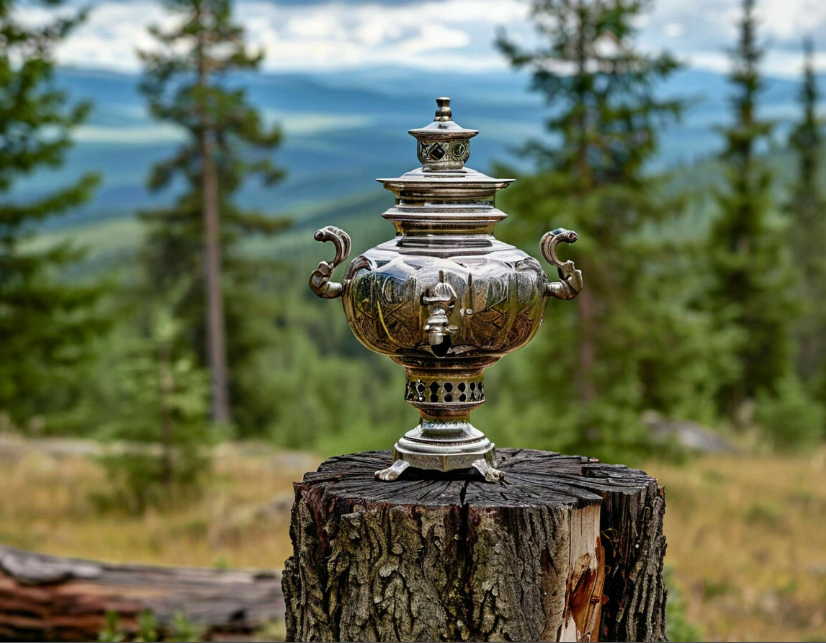 Давным-давно, в глубине Уральских гор, где вековые сосны шепчутся с ветрами, а реки несут в своих водах тайны земли, жил кузнец по имени Ермолай. Славился он не только силой рук, но и добрым сердцем. Как-то раз, бродя по лесу в поисках железной руды, Ермолай наткнулся на раненого медведя. Вместо того чтобы испугаться, кузнец вытащил из лапы зверя занозу, перевязал рану и поделился с ним краюхой хлеба. Медведь, оказавшийся духом гор по имени Семён-Камень, в благодарность открыл Ермолаю секрет «живого огня» — пламени, что рождается в недрах земли и способно согревать не только тело, но и душу. Семён-Камень провёл кузнеца к пещере, где бился родник с чистейшей водой, а рядом лежали самородки меди и злата-серебра. «Сотвори сосуд, объединяющий стихии: землю (металл), огонь, воду и воздух. Тогда в доме, где он будет стоять, никогда не угаснет тепло семьи», — сказал дух. Ермолай три дня и три ночи ковал диковинный сосуд — первый самовар. Его бока украшали узоры в виде уральских цветов и кедр