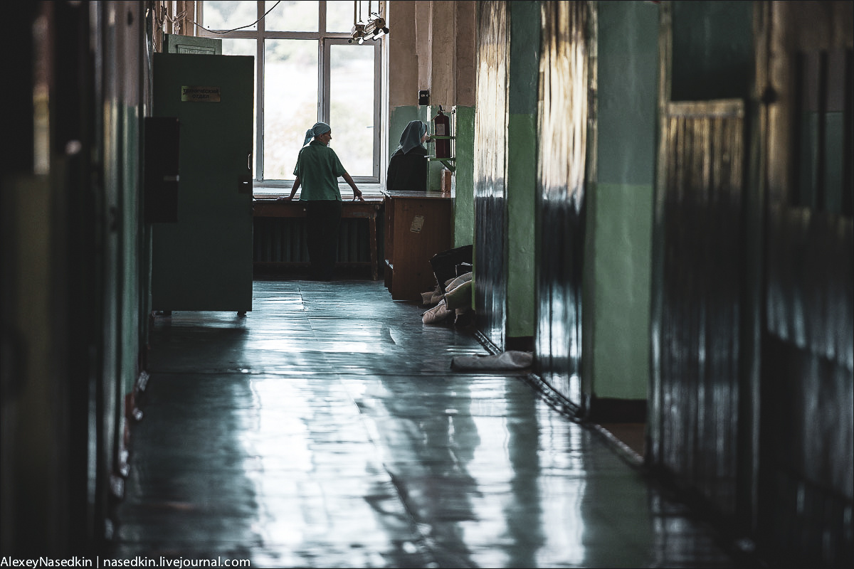 Лежат они по 5-8 человек в палатах. Кто-то несколько недель, потом переводят его в другу какую-то больницу, в такую же, на самом-то деле палату, с таким же 20 лет небелёным потолком, а кто-то лежит несколько лет и несколько ещё пролежит...