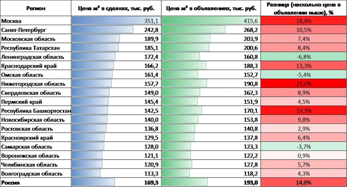⇒ Москва: 351,1 тыс. руб./м² ⇒ Санкт-Петербург: 242,8 тыс. руб./м² ⇒ Московская область: 189,9 тыс. руб./м²