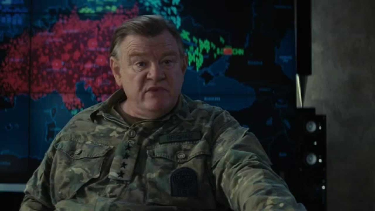 Когда генерал Бригам (Брендан Глисон) разговаривает с майором Уильямом Кейджем в первой части фильма, он объясняет, что работа по связям со СМИ станет немного сложнее. Бригам отправляет его на фронт, чтобы «продать вторжение».
