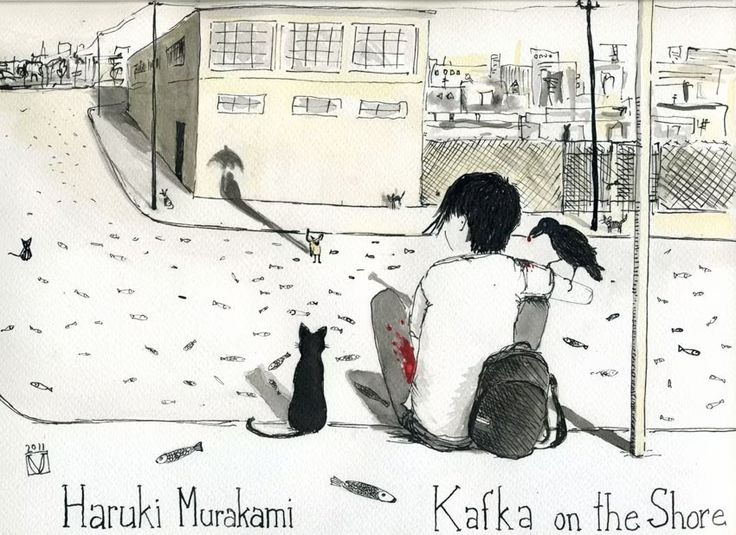Паренек убегает от предсказания отца из Токио, чтобы поселиться Такамацу, где встречает странноватого типа, который умеет общаться с кошками и в детстве видел НЛО. Завязка происходящего уже дает по мозгам, а ведь это только простенькое начало. Мураками развивает историю о похождениях своих героев в мистически-магический опыт переживания чужих жизней, бегства от предсказанного будущего и борьбы с самим собой на поприще преодоления собственных комплексов.