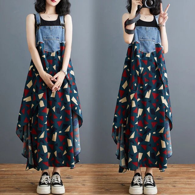 1. ⭐ Лето-Осенний джинсовый лоскутный шифоновый принт на бретельках, женский короткий жилет