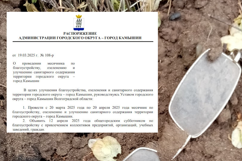 Глава Камышина Станислав Зинченко подписал распоряжение о проведении с 20 марта по 20 апреля 2025 года месячника по благоустройству, озеленению и улучшению санитарного содержания территории города. В документе уточняется: «Объявить 12 апреля 2025 года общегородским субботником по благоустройству с привлечением коллективов предприятий, организаций, учебных заведений, граждан». Комитету ЖКХ и капитального строительства поручено согласовать с ООО «Спецавтотранс» вопрос о возможности получения бесплатных талонов на вывоз мусора, собранного во время проведения месячника.