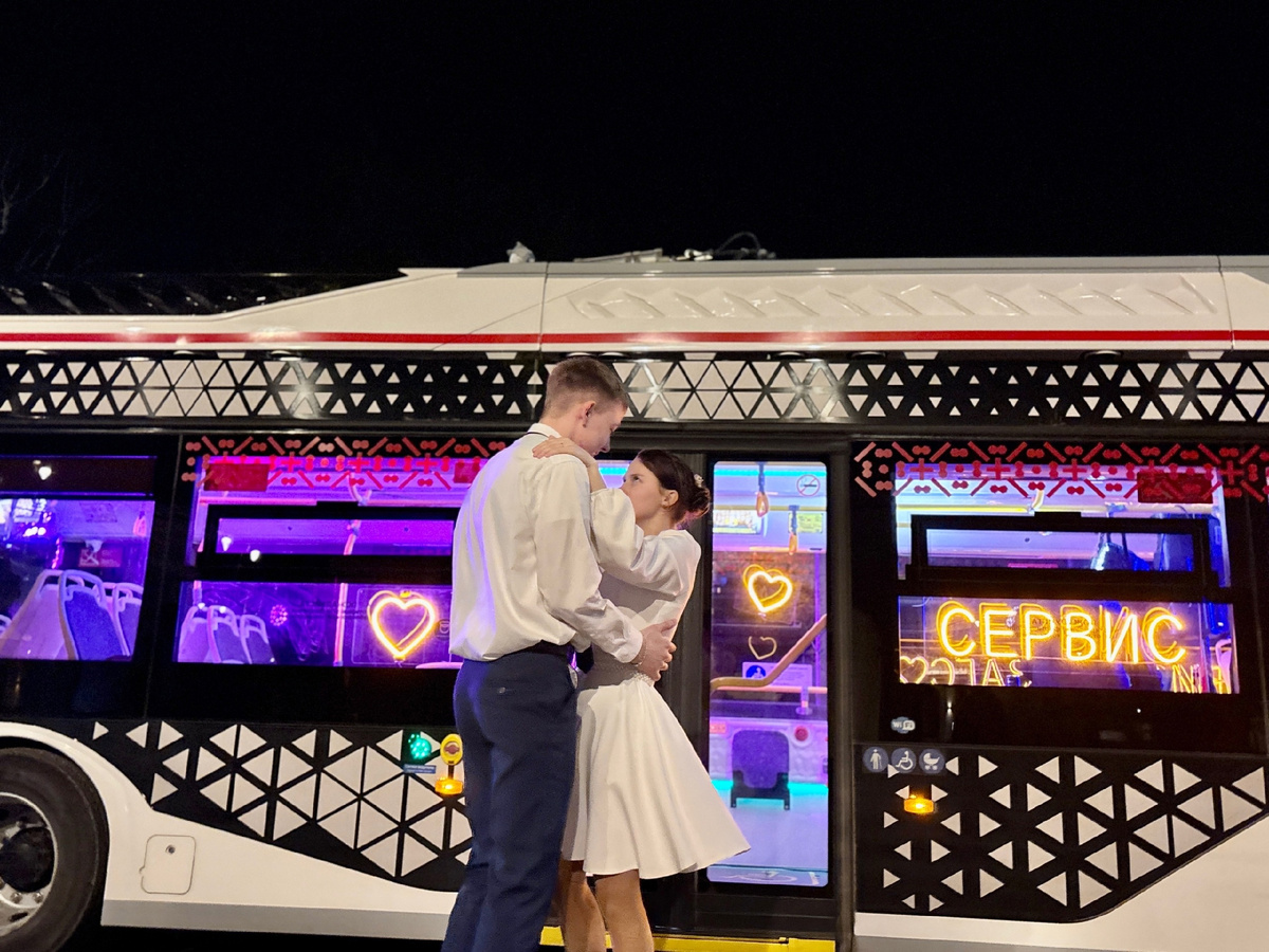 Необычную церемонию бракосочетания для 19-летнего Дмитрия и 18-летней Любови Карповых организовал «Сервис-ЗАГС». Влюбленные, которые пять лет назад познакомились в транспорте, теперь обменялись кольцами и сказали заветное «да» в новом рязанском троллейбусе. В истории города это первое официальное заключение брака в дороге. Случайный взгляд, трепет, ваша остановка Дима Карпов – студент строительного колледжа, будущий мастер общестроительных работ. Люба Невская – студентка железнодорожного колледжа. В далеком 2020 году, когда они еще грызли гранит науки в школе, жизнь свела их в троллейбусе. Мне удалось пообщаться с молодыми до того, как они получили официальный документ о заключении брака. Д.К. – Я ехал в троллейбусе и увидел Любу. Она мне сразу приглянулась и очень запомнилась, после этого я долго искал её в социальных сетях, но никак не мог найти. И вдруг, спустя время, эта девочка переводится в мою школу и даже попадает в мой класс! Тогда я сразу понял, что это судьба. Но отношения з