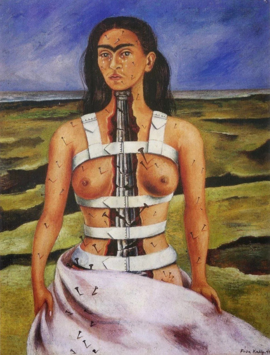 «Сломанная колонна» — картина, в которой переплетаются телесные страдания, душевная боль и внутренняя сила. Фрида не просто фиксирует свою боль на холсте — она делает её частью своей идентичности, трансформируя страдание в искусство. Эта работа одновременно о боли и о сопротивлении ей, о хрупкости и несгибаемой силе, о ранимости и борьбе за жизнь.