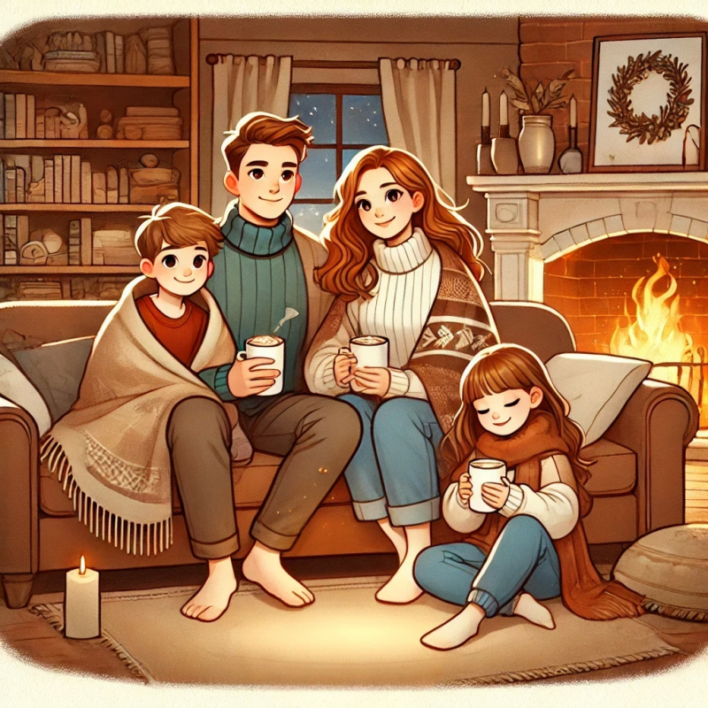Мама и дети уселись около камина и смотрели, как папа запихивает паклю между окном и рамой. Редкие беспокойные снежинки за окном носились туда-сюда на лёгком ветерке.