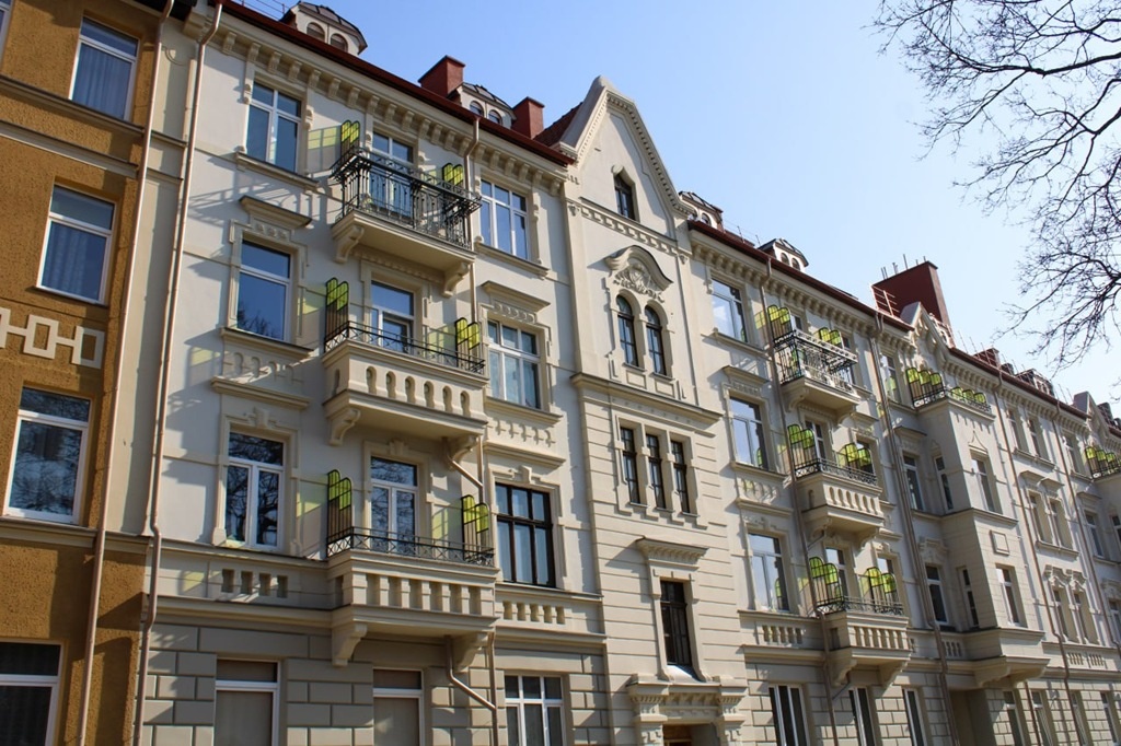 В историческом жилом комплексе «Порт-Артур» в Черняховске успешно завершены работы по восстановлению утраченных архитектурных элементов. Специалисты обнаружили на домах №9 и №11 по улице Комсомольской вертикальные деревянные крепления — последние остатки боковых балконных перегородок, защищавших от ветра. Для возвращения исторического облика здания были восстановлены балконы и балконные ограждения с ветрозащитными перегородками. Работы проводились на основе сохранившихся образцов балконов соседних домов и архивных фотографий жилого комплекса. Особое внимание было уделено реставрации исторических окон подъезда дома №9. Мастера создали новые ручки и петли, основываясь на сохранившейся фурнитуре — их практически невозможно отличить от оригинальных деталей. Историческое остекление дополнили новым фактурным стеклом различных цветов, что придало окнам особый характер. Примечательно, что в ходе работ была обнаружена единственная сохранившаяся дверь во всем комплексе «Порт-Артур», которая сейч