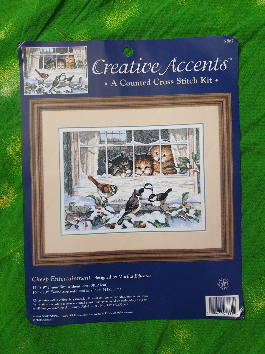 Покажу вам процесс, которые ещё не показывала отдельно. DIMESIONS "трое наблюдателей" у меня раритетный набор 1998 года, американская сборка. Вышито у меня 11% или 2926.5 крестика. Почему в конце 0.5? Потому что весь фон, как и любит дименшенс, вышивается полукрестом. Уже почти полностью видно одного котика. Всё не могу зашить ему кусочек уха. В щечках и глазах неполный зашив. Второй котёнок пока выглядит страшненько, но уже виден его красивый узор на шерсти. В полукрестах сделала ошибку, что закрепляла их микрозакрепками. Видны линии закрепок, как заметила, перестала так цеплять. Очень нравится цветовой эффект винтажа на будущих стёклах, да и на всей работе это прослеживается. Скажу честно, в какой-то момен я была недовольна процессом и не понимала, почему работа "не идёт ", "стоит на месте". Оказалось всё дело в натяжке канвы. Она провисала. Переставила на самозапяливающиеся nurge и процесс снова стал приносить мне удовольствие. Буду двигать его дальше, поделюсь с вами результатом