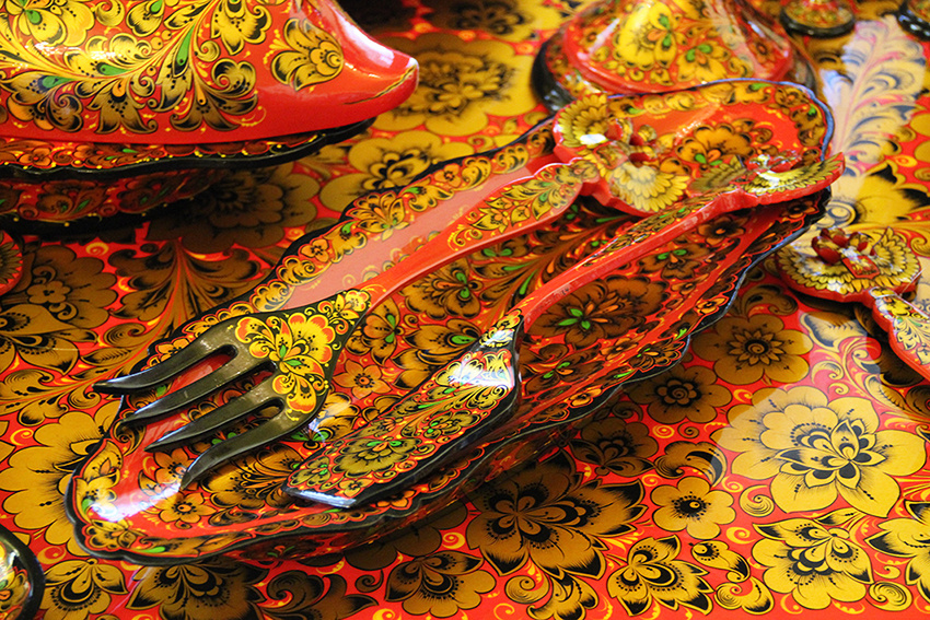 Хохломская роспись по дереву один из старинных видов русского народного искусства. Родина ее - лесной район Нижегородского края к северо-востоку от реки Волги. Нижегородские леса в ХVII веке служили пристанищем для старообрядцев. В их числе были мастера-иконописцы. Именно они, по преданиям, и подсказали крестьянам технику росписи, ставшей впоследствии хохломой. Промысел возник после освобождения от татаро-монгольского ига. Захватчики опустошили земли, и жители разграбленных деревень кормились продажей расписных изделий. Происхождение названия связано с торговым селом Хохлома, куда мастера из 50 соседних деревень привозили на продажу расписную деревянную посуду, а оттуда она отправлялась в разные уголки России и за ее пределы - в страны Азии и Европы. С древних времен жившие тут умелые мастера изготовляли красивую деревянную посуду, а с XVII века этот художественный промысел сложился в современном его значении. Хохломская роспись получила всемирную известность благодаря оригинальной тех
