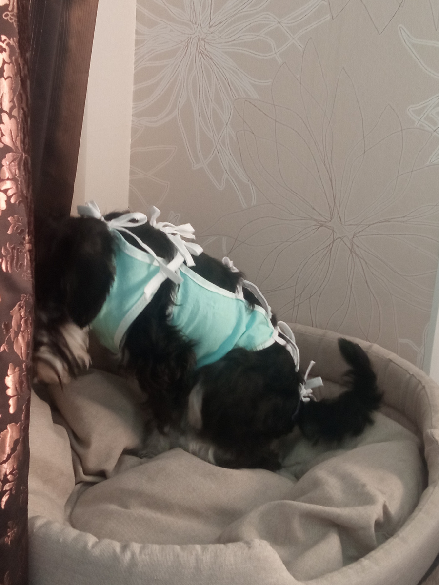 Как много в этом слове. Вообще, мы и планировали изначально стерилизовать Джесси, об этом я сразу сказала заводчику, когда звонила записываться на щенка. Но подумав какое-то время, всё же решили сначала обзавестись щеночком от Джеськи, когда она станет старше, а потом, лет в 8 её стерилизовать. Первую течку я не сильно боялась, и она у нас прошла спокойно. Большое запугали статьи о том, что с течкой характер может измениться: либо будет ангел, либо аЦкий Сатана. Но нет, характер у нас так и остался шебутным, трусишки, что я купила – бесполезная фигня, капельки не составляло проблем подтирать, сильного запаха тоже не было, да и кавалер у нас был всего один. Настойчивый, но я бдила! Кстати, после течки Джесся не любит, чтобы другие собаки нюхали попу. Уж не знаю, с чем это связанно. И вот, прошла течка, у Джеськи стало торчать правое ухо и мы пошли в вет, чтобы его как-то подклеить. Лайфхак – крепите 50 или 10 копеек на пластырь на кончик уха! Там сказали, что уши они не ставят, и что у