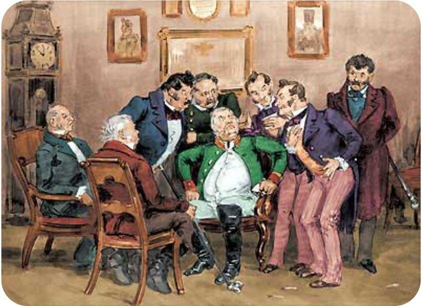 И другие чиновники, которые отвечают за соцзащиту, образование и здравоохранение, описаны великолепно. Особенно насчет медицины Гоголь хорошо прохаживается.