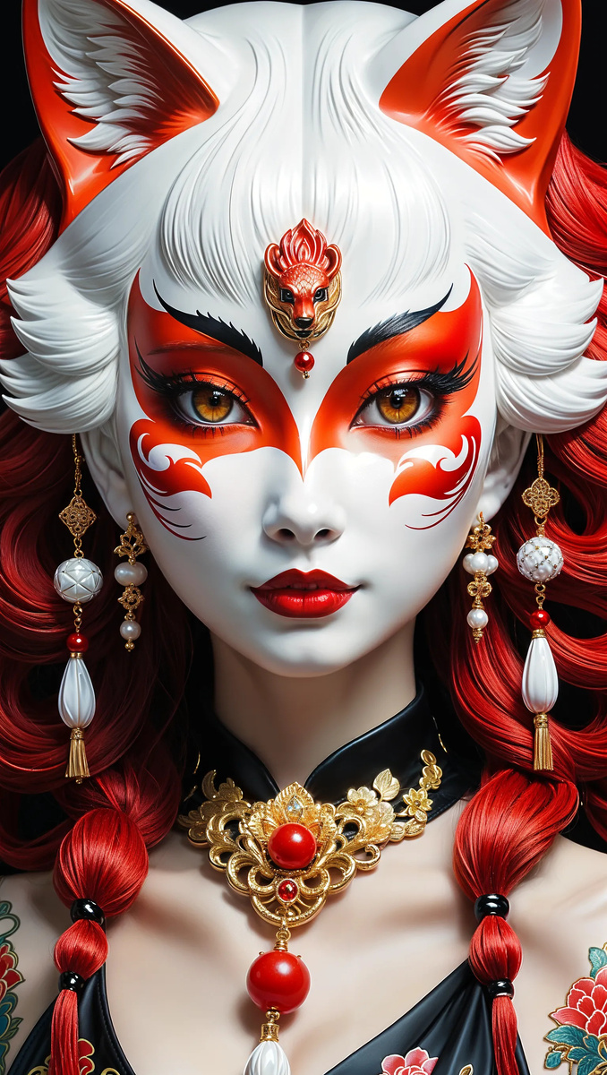 Красивая девушка кицунэ, татуировка, красные ленты, вьющиеся вокруг, детальная японская керамическая маска лисы, рыжие волосы, красно-белые драгоценные украшения, золотые бусы, мрачный фотореализм, психоделическая живопись, мистический реализм, гротеск, эстетика ужасов, яркий, контрастный Эти нейроарты созданы мною в нейросети Playgroundai. _________________________________________________ P.S. Приглашение на Мастер-Классы по изучению Топовых Нейросетей, где Вас ждут Бонусы и Подарки: <<<Участвовать Бесплатно>>>