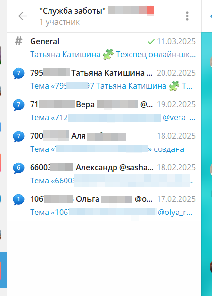 Эксперт столкнулась с тем, что пользователи часто терялись в функционале бота. Вопросы о том, как пройти курс, где найти материалы или как оплатить подписку, приходили в разные каналы: чат-бот, почту, Telegram-группу. Это создавало хаос: 🌸 Пользователи ждали ответа по несколько часов, а иногда и дней. 🌸 Эксперты тратили время на поиск информации о пользователе и его запросах. 🌸 Вопросы терялись, что приводило к недовольству клиентов и негативным отзывам. Поэтому Служба Заботы в нашем боте нацелена на реш