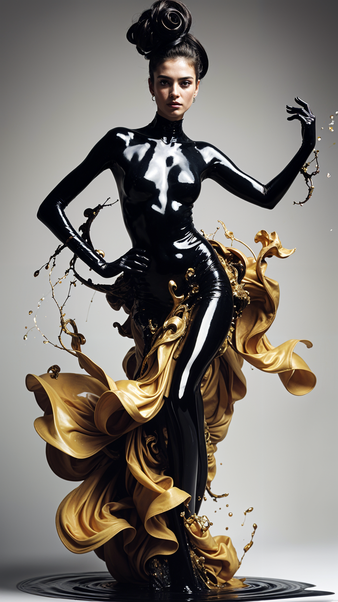 Детальное изображение персонажа женщины, источающей поразительную смесь флера моды, вдохновленного стилями Константина Разумова и Пьера Кардана, запечатленное в пронзительных черных и золотисто-белых оттенках, яркие текстуры, кружащиеся в стиле чернил в воде Альберто Севезо, костюм, воплощающий дух авангардной моды, заметно плавающая типографика без засечек, носящая собственное имя, прибор с мягким рассеянием Эти нейроарты созданы мною в нейросети Playgroundai. _________________________________________________ P.S. Приглашение на Мастер-Классы по изучению Топовых Нейросетей, где Вас ждут Бонусы и Подарки: <<<Участвовать Бесплатно>>>