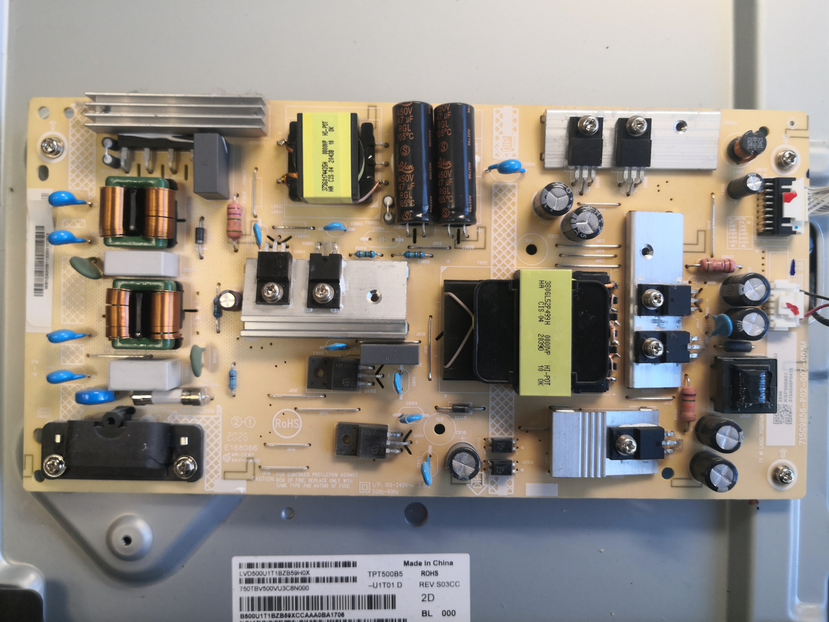 И тут есть некоторые нюансы. Надысь был нервно-стрессовый ремонт этого телевизора. Если кто-то не видел статья в ссылке. Итак - фото блока ниже. Во первых хочу предупредить. Данный блок питания, при обрыве подсветки, напряжения на разъёме не выдаёт! Так что будьте бдительны 😁. Внешне он тоже может сначала вызвать знакомое чувство. Вроде всё просто. Стоят транзисторы и низкоомный резистор... Но это не он! Его трогать не нужно. Вот фото драйвера с обратной стороны. Драйвер собран на микросхеме pf7904s и транзисторе D8N25 А регулировочные резисторы находятся вот здесь. Давайте сделаем начальный замер. И вот ещё одна засада.
