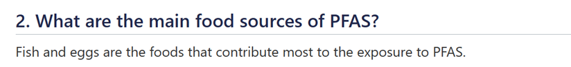 То, что «вечные химикаты» уже присутствуют везде – это понятно. Откуда больше всего вечных химикатов поступает в наш организм? Однозначный ответ западных исследователей и представителей государств – из воды. Далее по логике вещей следует пища, среда обитания которой вода. Рыбы, моллюски и водные животные. На сайте официальной государственной структуры (European Food Safety Authority) Европейского агентства по безопасности продуктов питания (https://www.efsa.europa.eu/en/topics/per-and-polyfluoroalkyl-substances-pfas ) сказано, что основным источником «вечных химикатов» в пище является рыба и яйца. Скриншот ниже: Вот как на вопрос касательно рыбы отвечает то же Европейское Агентство: «Важно соблюдать разнообразную диету, включая морепродукты, которые поддерживают развитие иммунной системы в детском организме и благотворно влияют на здоровье сердца взрослых». Скриншот ниже: Простыми словами, отказаться от рыбы в своем меню будет большим злом, чем питаться рыбой, содержащей «вечные химик