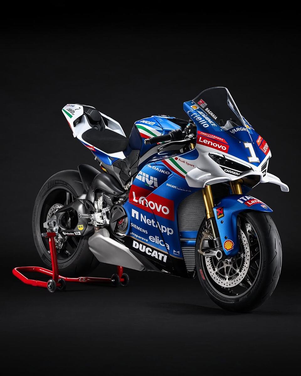 Из особенностей: гоночная ливрея чемпиона мира MotoGP Пеко Баньяи с номером 1, карбоновые колеса, гоночная тормозная система, на рулевой траверсе гравировка с его уникальным номером, схемой гоночной трассы Гран-При Италии, а также гравировка с лучшим временем круга в гонке на ГранПри Италии 2024.