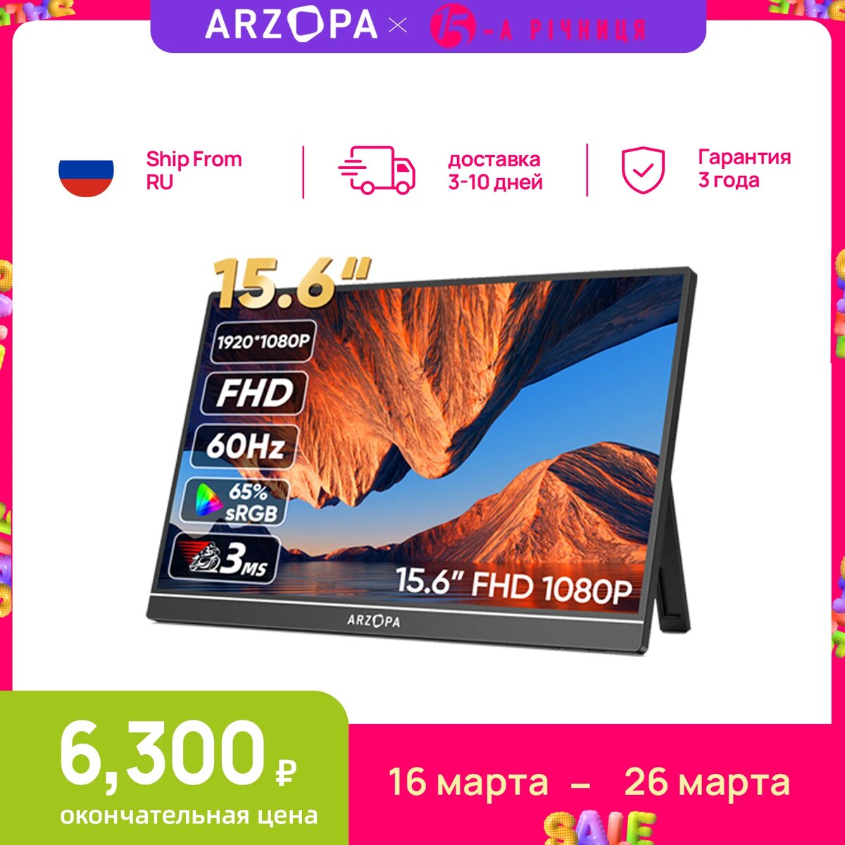 ***Переносной монитор ARZOPA, 15,6 дюйма, FHD 1080P на Aliexpress.ru***
