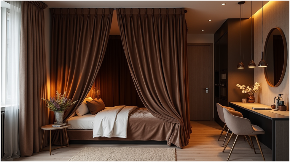 Я сама долго мучилась с этим вопросом, пока не повесила плотные бархатные шторы цвета молочного шоколада вокруг своей кровати. Прям зона приватности появилась! И главное - психологический комфорт, когда приходят гости, а кровать не на виду.