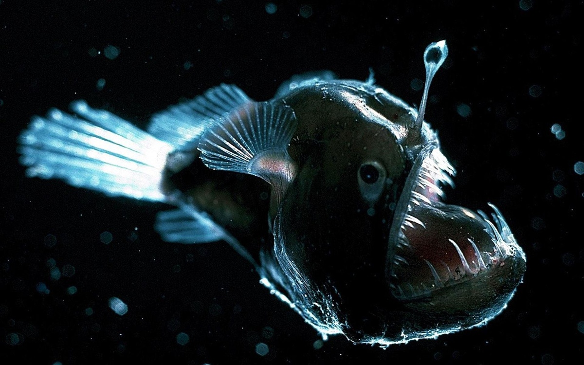 Всем привет ✌️ В океанских глубинах скрывается множество удивительных созданий. Эти животные прекрасно адаптировались к жизни в условиях полной темноты, под огромным давлением и в среде, где сложно найти партнёра для размножения или даже пищу. Поэтому многие из них обладают необычными особенностями: светящимися органами, огромными ртами, растягивающимися желудками и многим другим. Я хочу показать вам некоторых из этих жутких, но интересных существ существ. 1. Меланонцет Джонсона Рыба с забавным названием «меланонцет Джонсона» обитает на глубинах от 100 до 4000 метров. Это удивительное животное относится к отряду удильщикообразных и знаменито своей светящейся приманкой, расположенной на конце длинной удочки. Эта приманка излучает свет благодаря специальным бактериям, привлекая добычу. Как только потенциальная жертва замечает приманку, она приближается, и удильщик с удовольствием поглощает её. 2. Живоглот Живоглот — удивительное создание. Когда он голоден, его внешность ничем не отлича