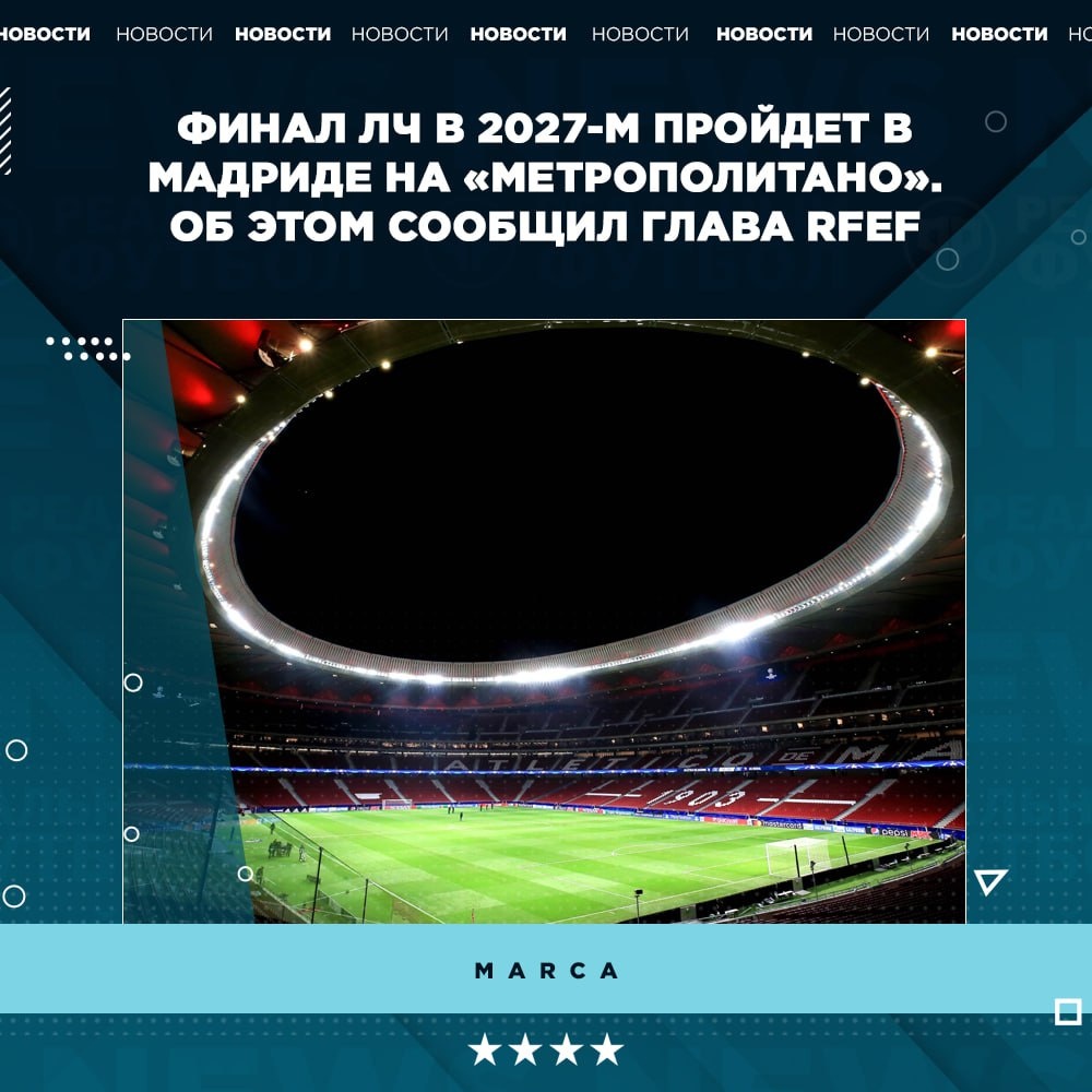 Президент Королевской испанской футбольной федерации Рафаэль Лусан заявил о получении гарантий насчет того, что решающий матч пройдет на «Метрополитано». Стадион «Атлетико» вмещает 70460 зрителей. В сентябре стало известно, что УЕФА отозвал у «Сан-Сиро» право на организацию игры из-за возможных ремонтных работ. На финал ЛЧ претендовал, помимо «Метрополитано», и Олимпийский стадион в Баку. Источник: Marca