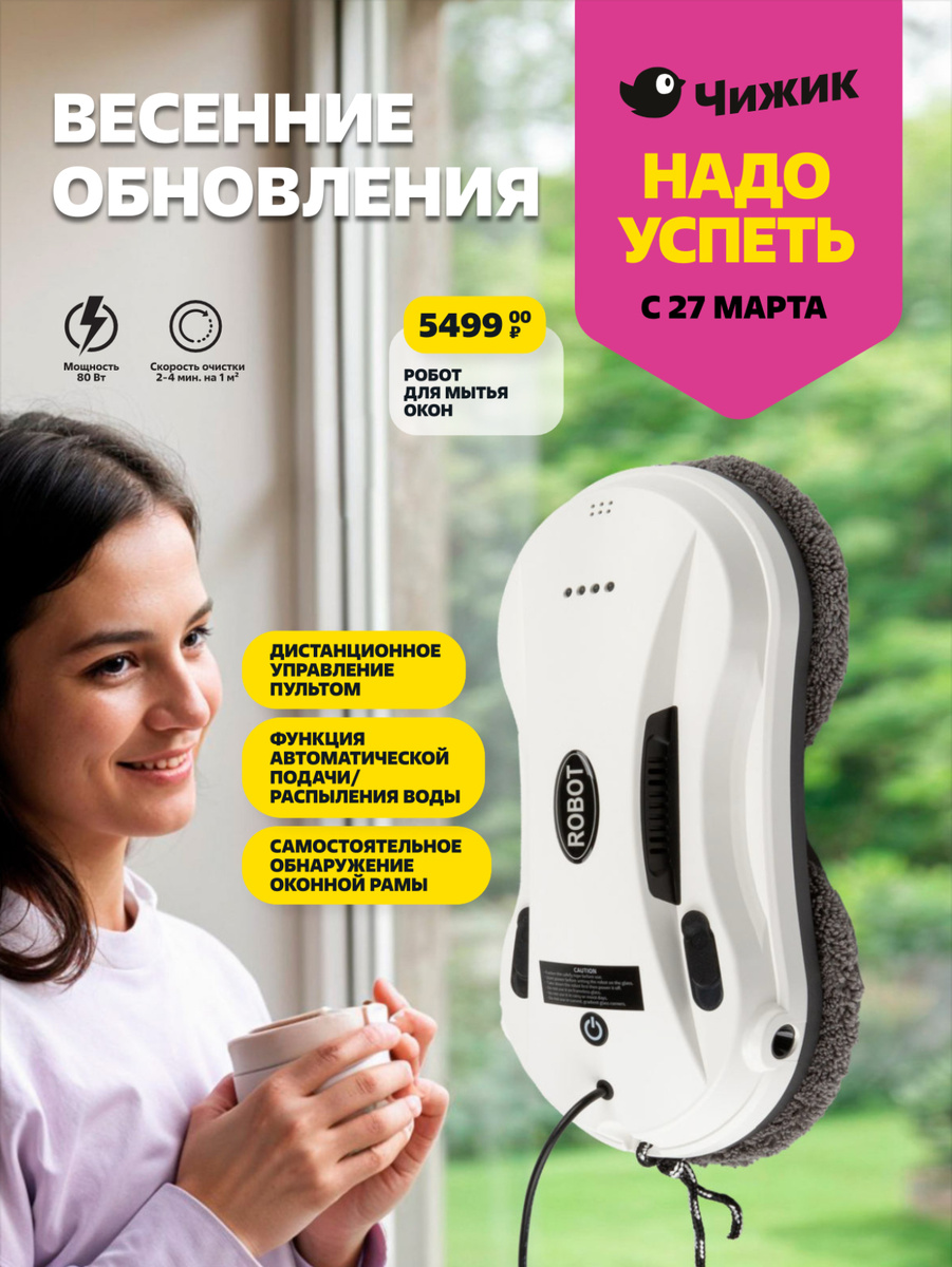 Привет-привет, мои любимые читатели! Только вчера магазин ЧИЖИК порадовал нас свежими поступлениями, а уже сегодня готовит новые сюрпризы! Вчера мы заглянули в обновлённый каталог, и теперь я спешу поделиться с вами анонсом новинок, которые поступят в продажу с 27 марта! Тем, кто случайно пропустил мой прошлый пост про новинки от ЧИЖИКА, обязательно заглядывайте сюда 👉 Изображения на канале не являются рекламой, а лишь информирует аудиторию об акциях, скидках и ценах в магазинах. Продолжая чтение вы соглашаетесь с тем, что в данной статье не рекомендуются к покупки те или иные вещи или товары. Автор не является продавцом данных товаров и не несет ответственность за их качество. Товар из данной статьи не являются рекламными, за исключение специально обозначенных блоков. Начну с обложки каталога - впервые приведут робота, для мытья окон🤔 Далее продовольственный ассортимент Продукты «новинки» - сладости, бакалея, консервация, и кисель в упаковках 🤔 Товары для кухни, мно