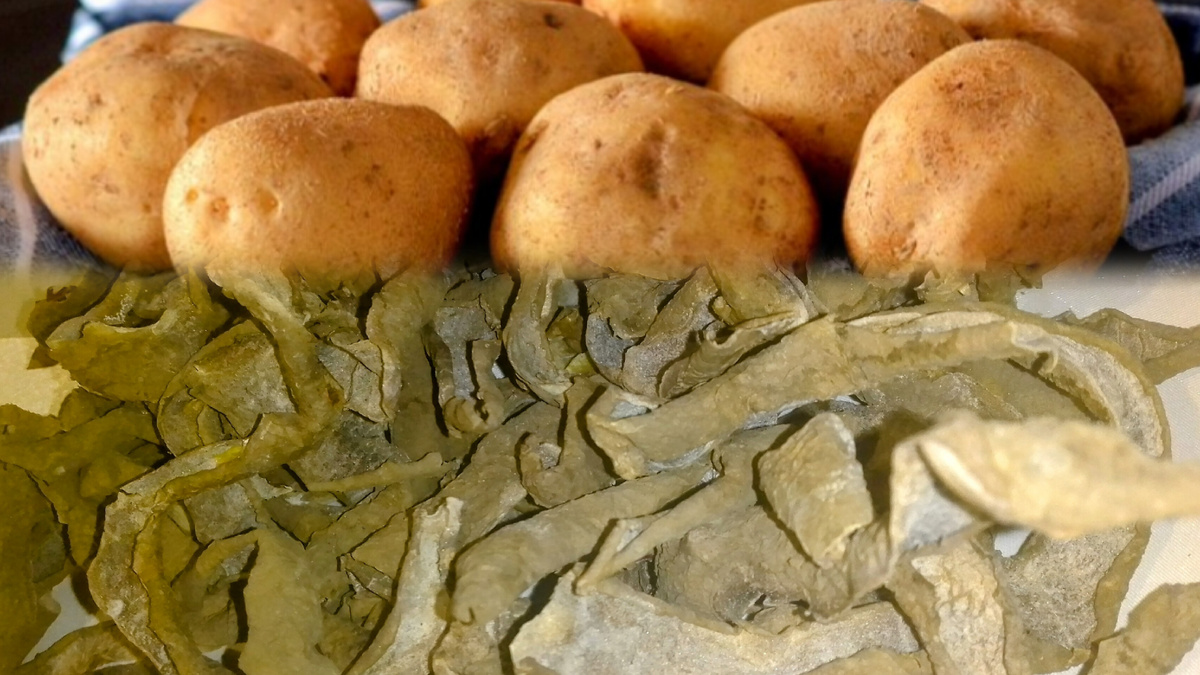 Подкормка для растений. Бюджетное, экологически чистое удобрение. Очистки от картофеля - это органическое удобрение, ценное для многих овощей, цветов, плодово-ягодных кустарников и плодовых деревьев. Картофель содержит железо, магний, марганец, цинк, калий, магний, марганец, фосфор, полисахариды, крахмал. Все эти элементы необходимы растениям для фотосинтеза, роста, развития корневой системы, формирования плодов, а также полезны для почвы, обогащают её, структурируют. Использовать свежие очистки не советуют, так как может из них прорасти картофель, лучше заготавливать впрок ( сушат, замораживают). Годятся только из здоровых клубней и зрелых. Картофельные очистки богаты калием, способствуют здоровью побегов, защите их от вредителей. Замороженную или высушенную кожуру заливают кипятком, дают настояться. Настой используют для полива, а кожуру заделывают в почву. Сухие картофельные очистки можно измельчить в муку. Также очистки используют при посадке овощей, цветов, ягодных кустов, до