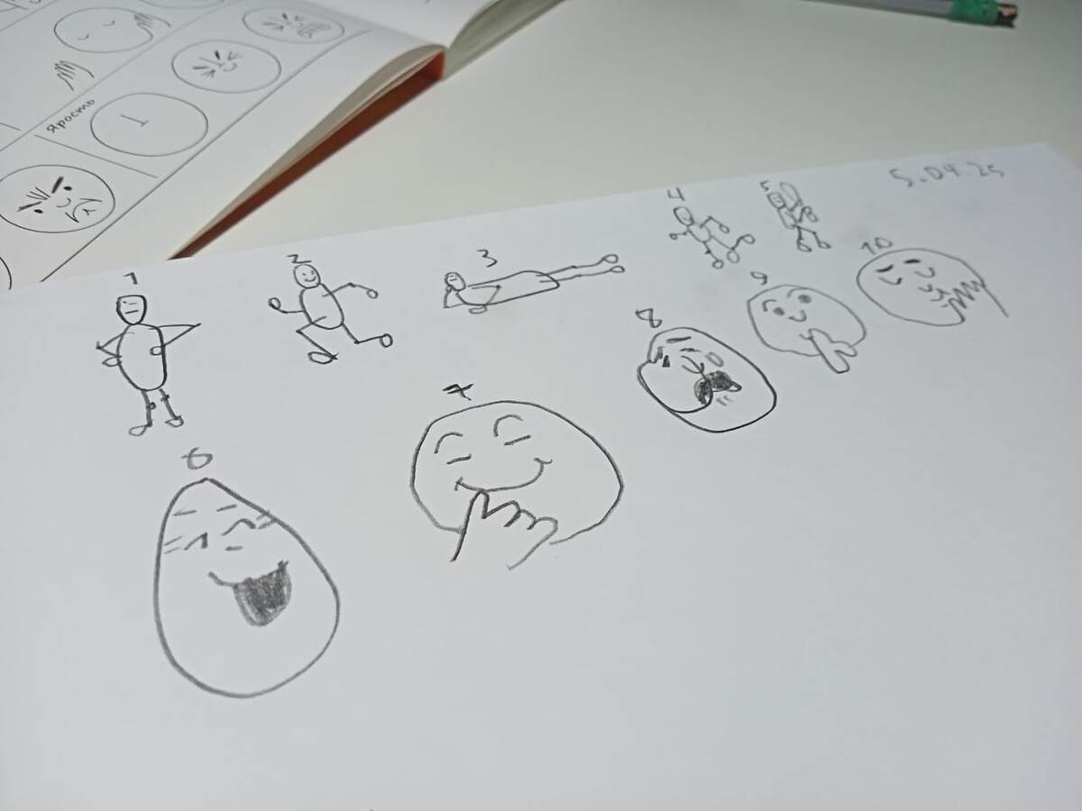 Миг (596). Зубы, значит, Гриша рисовал? Рисовал. Глаза рисовал? Рисовал. Значит, что надо делать? Правильно. Немедленно высасывать из пальца что-нибудь созидательное в этом русле и рисовать. Опять. Чтобы были у человека навыки-возможности реализовывать задуманное. Я тоже немножко рядом рисую, за компанию, так сказать. Конец. МИГ. Что это? Это статья, под которой можно по желанию опубликовать фото сегодняшнего дня. Любое. Портрет, пейзаж, натюрморт, не важно. Цель? Остановиться и увидеть жизнь вокруг. Правила: Будьте людьми. Первая статья на тему вот. Подборка на тему МИГ вот. В прошлом году в этот день. 05.04.22 - Сенсорные нарушения. Гиперслух. Как мы это преодолели. (Тык.) 05.04.23 - Дневник, перо, Гриша. (Тык.) 05.04.24 - Плач Ярославны, или почему работники школ унижают родителей? (Тык.) 05.04.24 - Чтение, озарение. Почему человек в 14 лет начал читать. (Тык.)