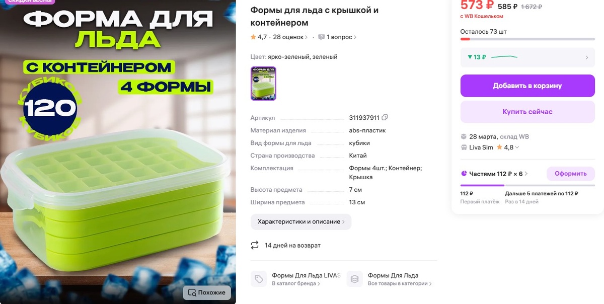 Удобство. Контейнер защищает от проливания, а яркий цвет форм добавляет радости в процесс. После заморозки лёд легко извлекается и хранится в контейнере.