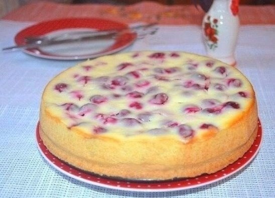 К творогу добавить сахар, сметану, ванилин, яйца, тщательно перемешать.Вишню перемешать с крахмалом.Вылить творожную начинку в форму на тесто.Сверху выложить вишню, вдавливая в творог.Выпекать творожный пирог с вишней в духовке 40-50 минут при температуре 170 градусов.Творожный пирог с вишней готов. Гармоничное сочетание нежнейшего творога и кисловатой вишни не оставят Вас равнодушными
