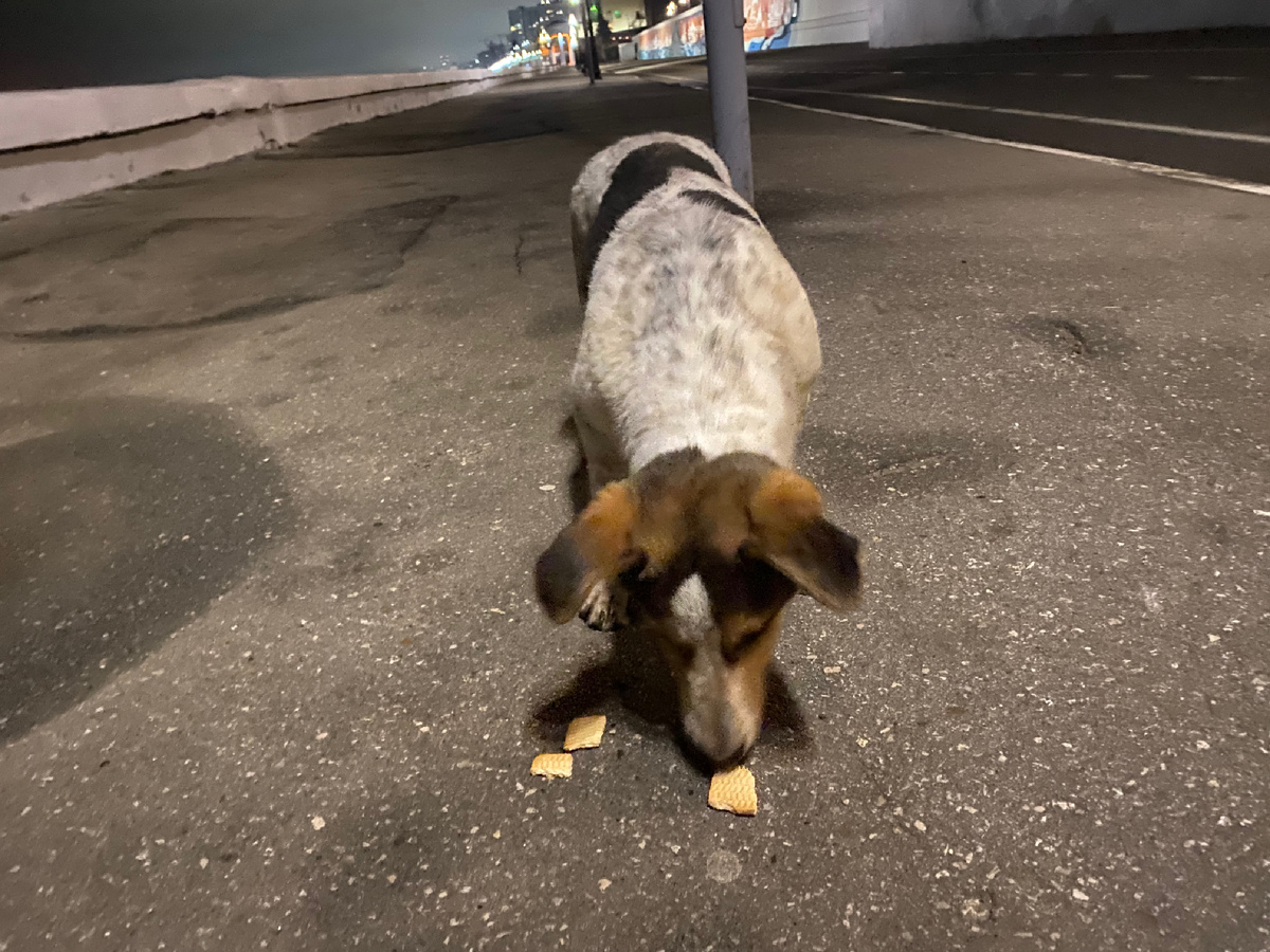 Это не наш подопечный, но почему не угостить проходящего мимо песеля печенькой?