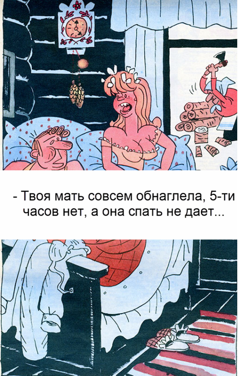 Высмеивали и сильно трепетных родителей, которых сейчас психологи бы назвали "гиперопекающие", которые для своих великовозрастных дитять готовы были на всё. А дитяти эти свешивали свои длинные ножки с шеи "предков" и в ус не дули. Смешно? Да нет, скорее грустно. Но ведь карикатура - это не всегда про смешно. Это чаще всего про задуматься.