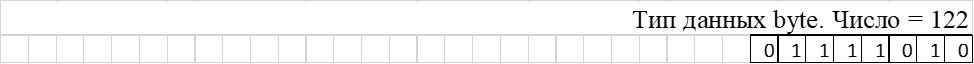 На момент написания статьи, максимальная продолжительность жизни составила 122 года. Давайте посмотрим, как двоичная запись числа 122 будет выглядеть в переменных с различными типами данных. Так как, возраст не может быть отрицательным, то для хранения значения возраста, выберем тип данных для хранения положительного числа.