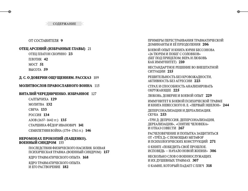 В заключение приводятся выдержки из материалов насельника Соловецкого монастыря иеромонаха Прокопия (Пащенко), в которых поднимается тема преодоления феномена, получившего название боевой психической травмы. Материалы содержат воспоминания воинов, выживших в экстремальных обстоятельствах и поделившихся своим опытом.