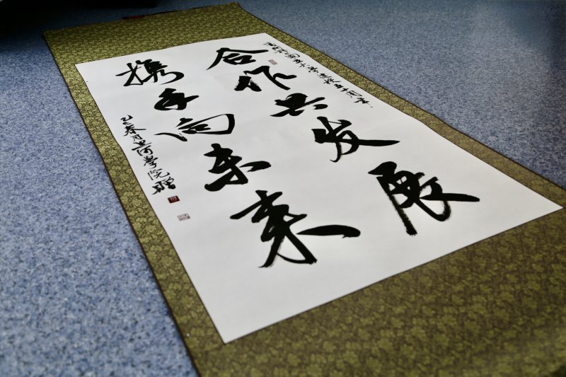 В подарок от профессорско-преподавательского состава вуза-партнера АмГУ получил каллиграфический свиток с поздравлением, где сказано о совместном сотрудничестве и развитии ради будущего.