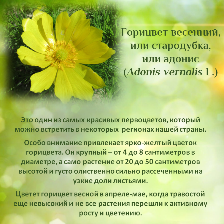 Солнце греет всё сильнее, а значит весна набирает обороты. Кое-где уже появились первоцветы. Жители других регионов их очень ждут. Мы начинаем вспоминать красивые и яркие первоцветы. Сегодня горицвет. Экспериментируем с форматом. Эта рубрика будет выходить в виде карточек. Как вам? Поделитесь впечатлениями. Если у вас есть красивые фотографии первоцветов, то не стесняйтесь прислать их в сообщения канала. Ваши фотографии увидят все.